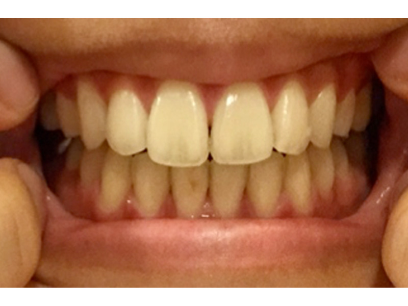 「イー」と奥歯でかみあわせた写真