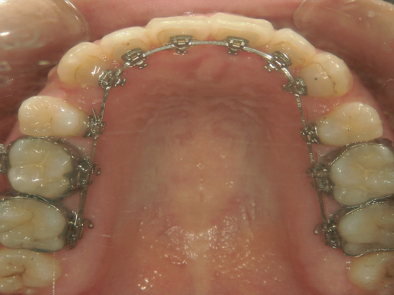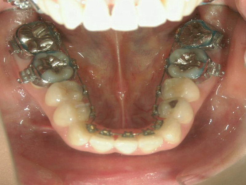 裏に装置を付ける為、お口の中が狭くなります。装置になれれば不自由なく会話やお食事できます。