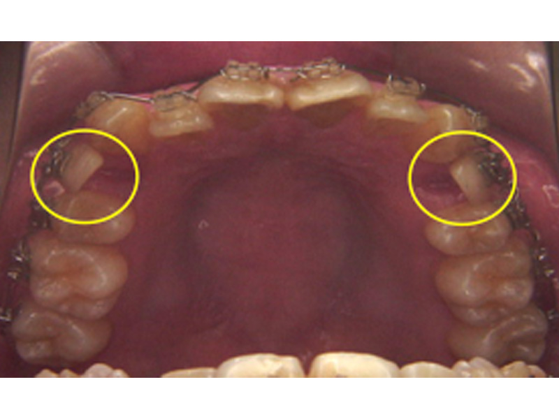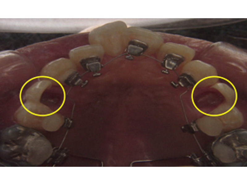 そのような場合、その部分の矯正装置に人工歯を組み込むことができます。飾りなので、咬むのに使うのは厳禁ですが、見た目は十分にカバーされます。唇側・舌側のいずれでも、可能です。